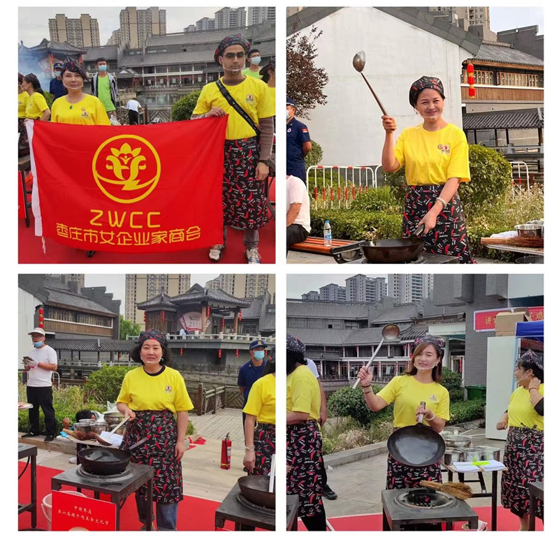 此次盛會,棗莊市女企業(yè)家商會受邀并組織20余名會員參加。在商會會長盧春穎的帶領下,商會會員企業(yè)山東化繁生物科技有限公司、山東鼎養(yǎng)食品有限公司、棗莊暹羅印象泰國直營店三家企業(yè)現(xiàn)場布置展位參展,充分展示了會員企業(yè)優(yōu)秀的企業(yè)文化和豐富的特色產品。同時以盧會長為代表的還參加了百姓炒雞表演,展現(xiàn)了精湛的廚藝,商會副會長張月喬(山楂妹)受大會邀請參加開幕式并激情演唱自己的原唱歌曲。